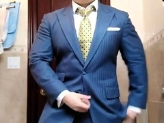 Str8 daddy jerking off in suit